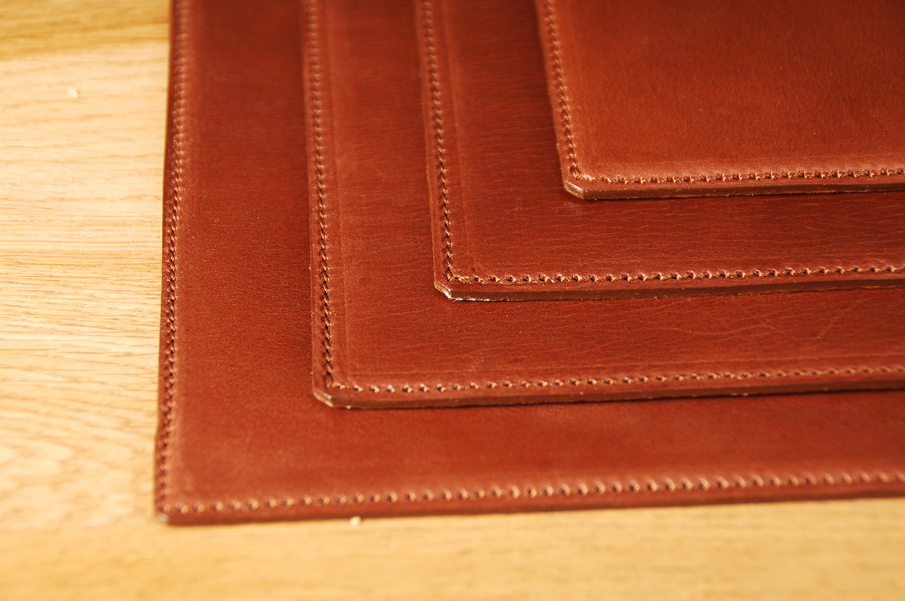 Escribanía de piel de vacuno de origen vegetal, hecha a medida según vuestras necesidades. Es un accesorio de escritorio de lo más elegante, viste tu espacio de trabajo. El detalle del pespunte en color hueso realza la elegancia de la pieza.