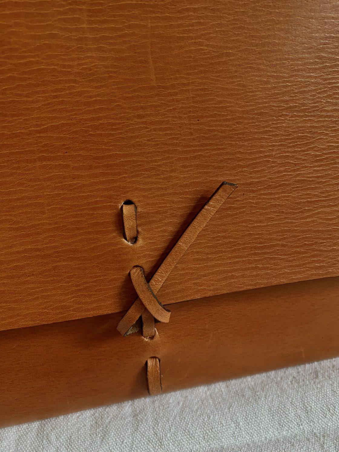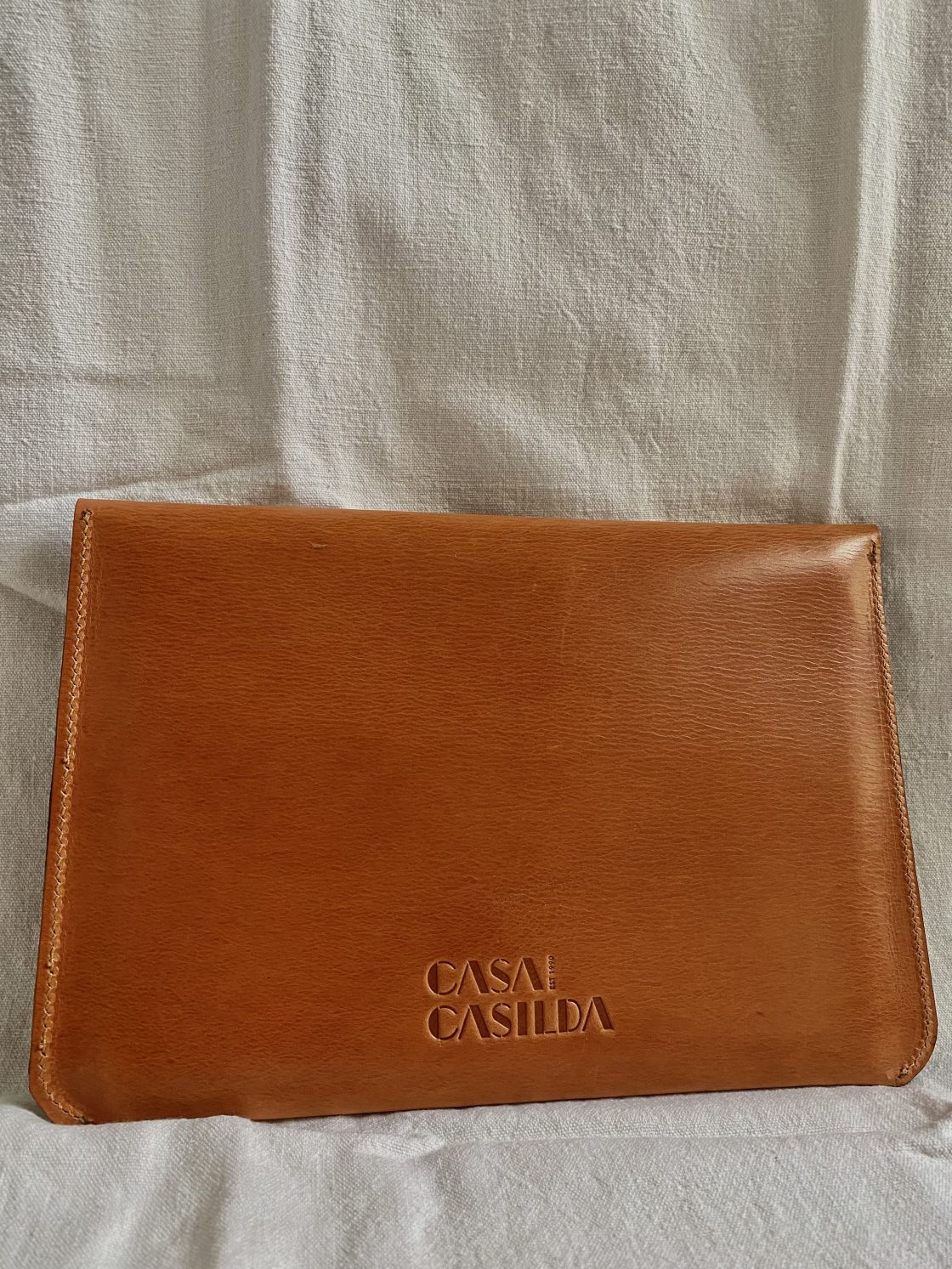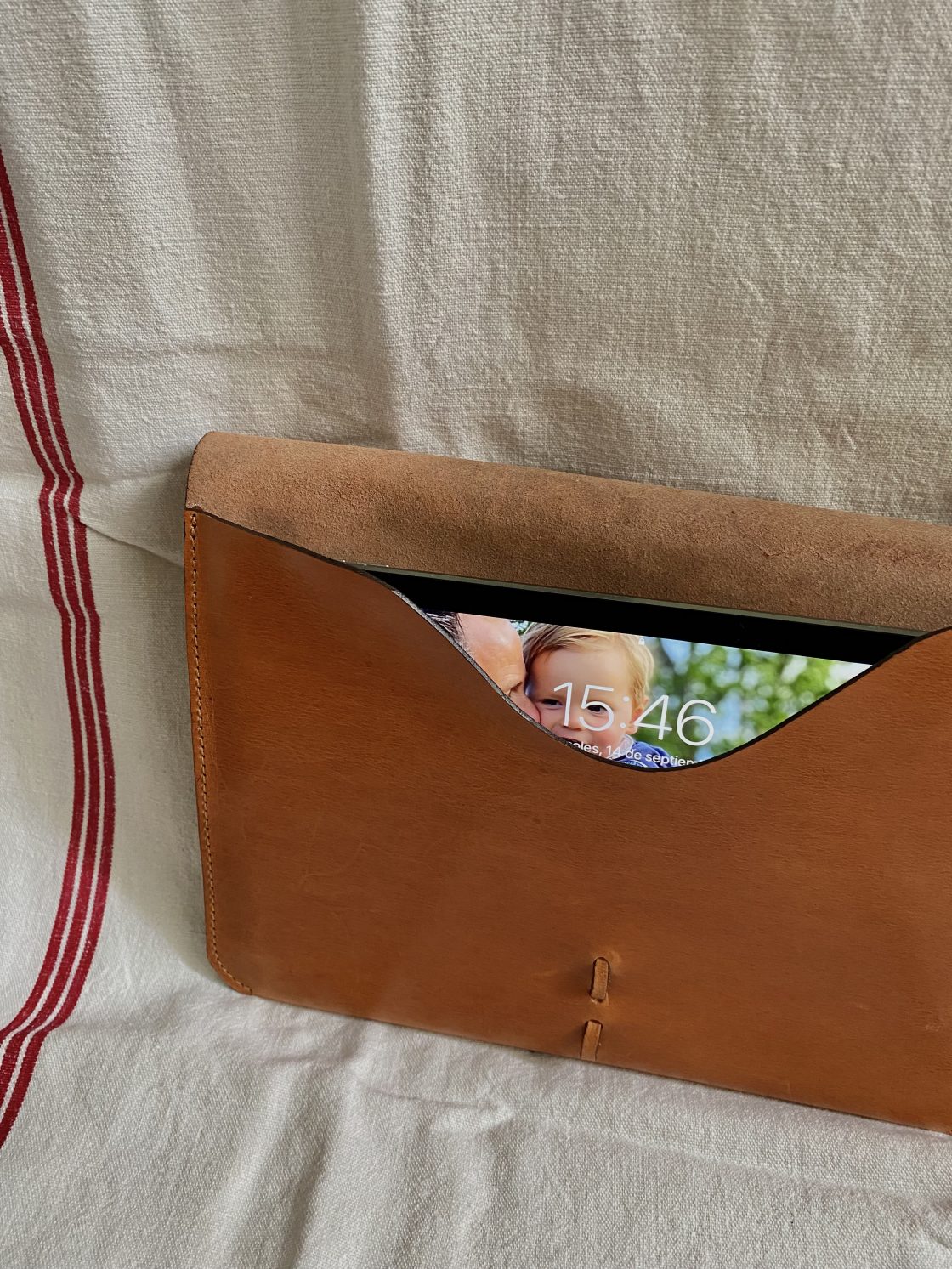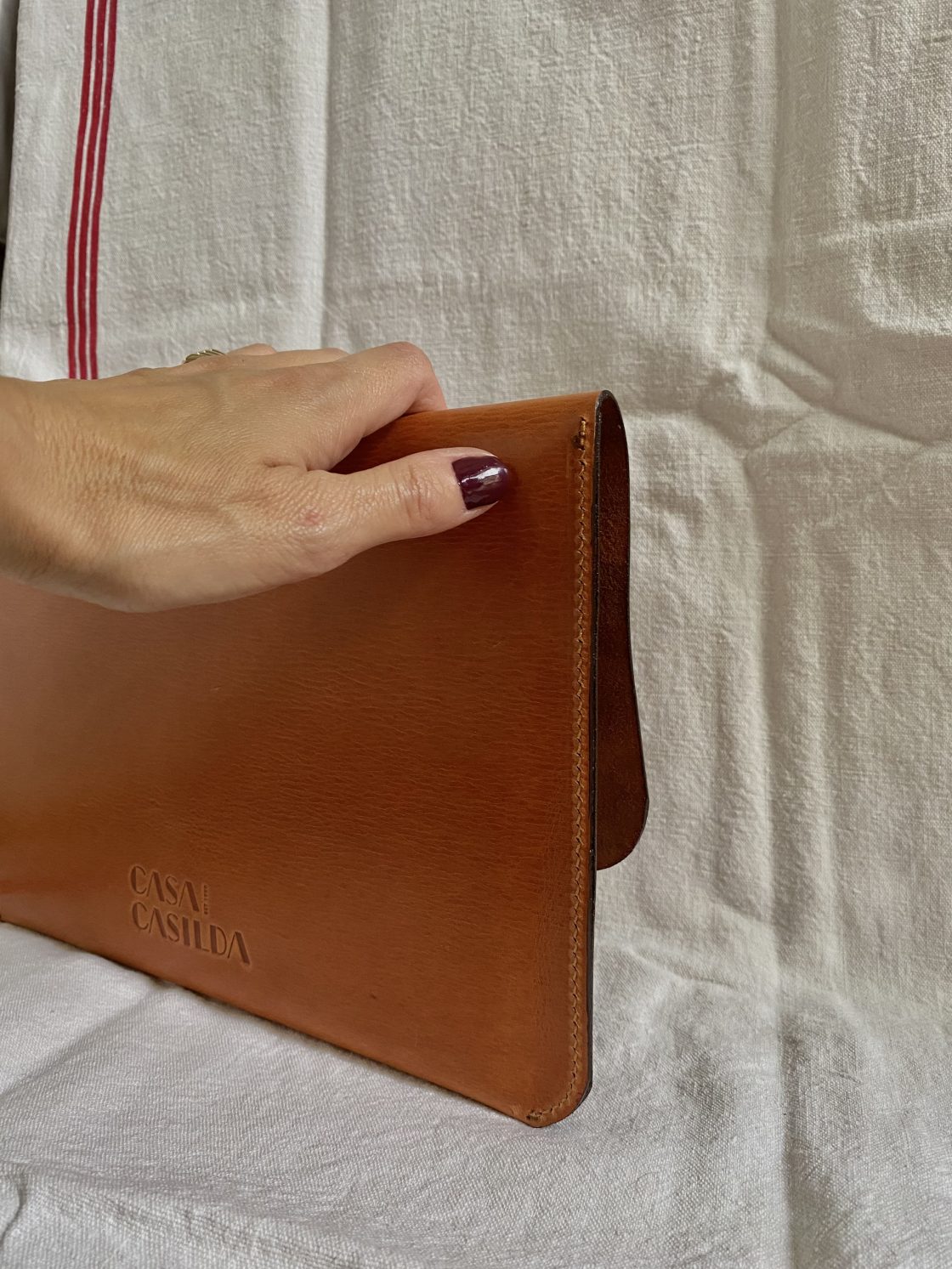 Nuestra funda de iPad FEDERICO es una pieza elegante en la que preservar tu table. Tiene una solapa que se cierra con una cinta también de piel y en ella puedes grabar tus iniciales y así llevarlo todo personalizado.